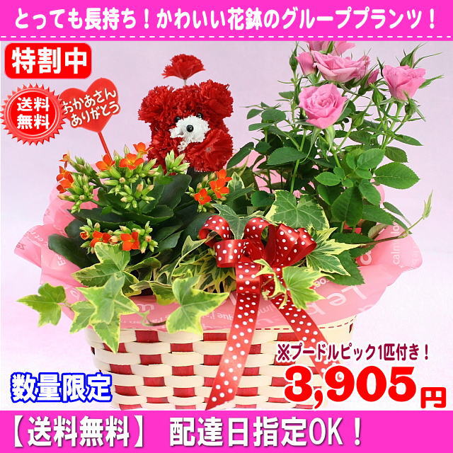 母の日はちもの★マミーバスケット【プードル1匹付】3,550円【送料無料】ネット特価!母の日ギフト 早割 50代 60代 70代 80代