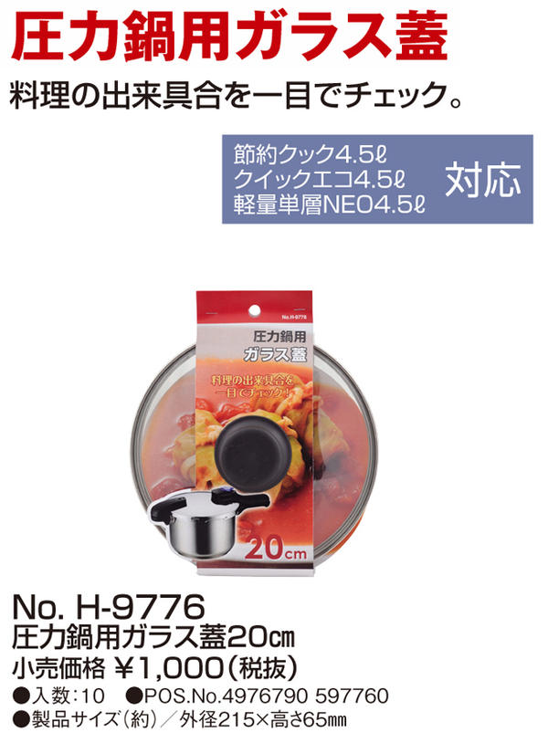 圧力鍋用ガラス蓋20cm H-9776[PAL]