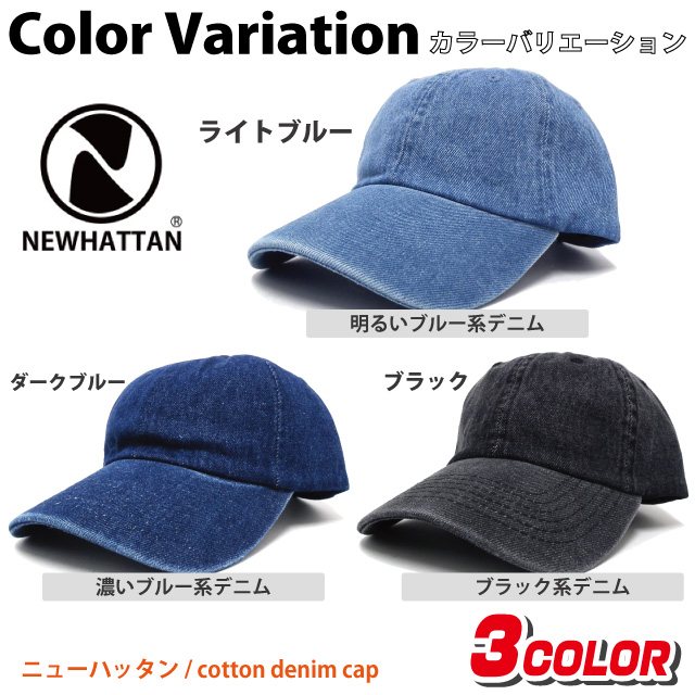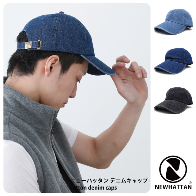 キャップ NEWHATTAN 帽子 メンズ cotton denim caps コットン デニムキャップ 全3色 cap-1025 メール便は送料無料 ニューハッタン レディース 春 春夏 秋冬 オールシーズン UV 紫外線対策 野球帽 シンプル サイズ調節 綿 男女兼用
