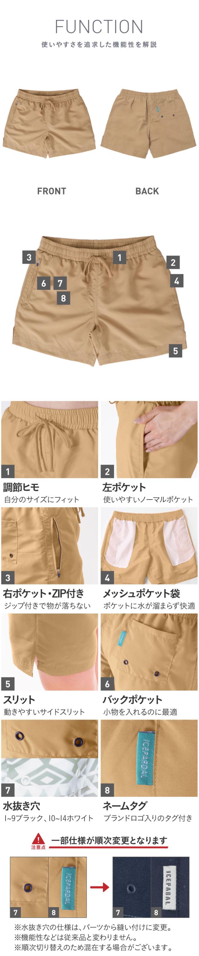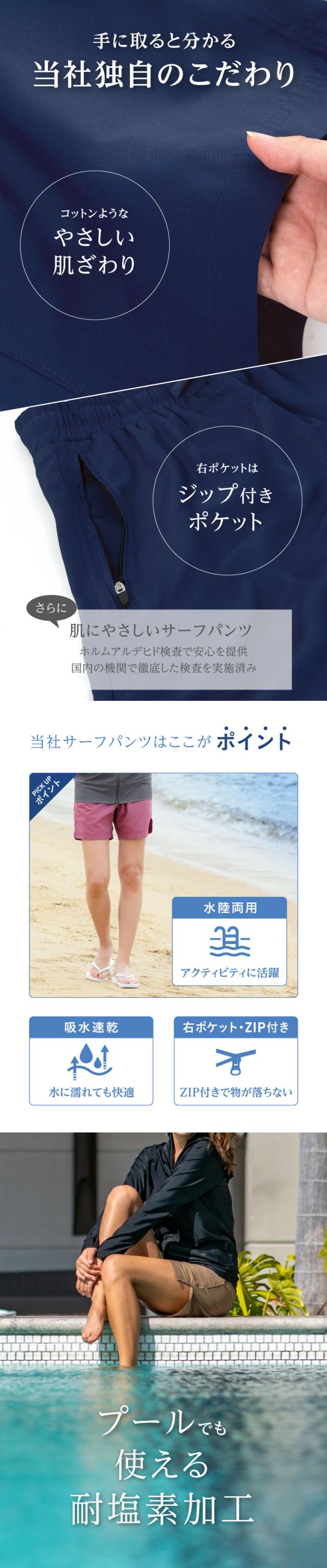 サーフパンツ レディース 水着 ミドル丈 ボードショーツ 速乾 水陸両用 体型カバー 耐塩素 ルームウェア S〜4L 大きいサイズ ジップポケット IR-7700