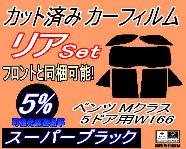 リア (b) ベンツ Mクラス 5ドア W166 (5%) カット済みカーフィルム リアー セット リヤー サイド リヤセット 車種別 スモークフィルム リアセット 専用 成形 フイルム 日よけ 窓ガラス ウインドウ 紫外線 UVカット 車用 166057 166074 5ドア用 H24.6〜