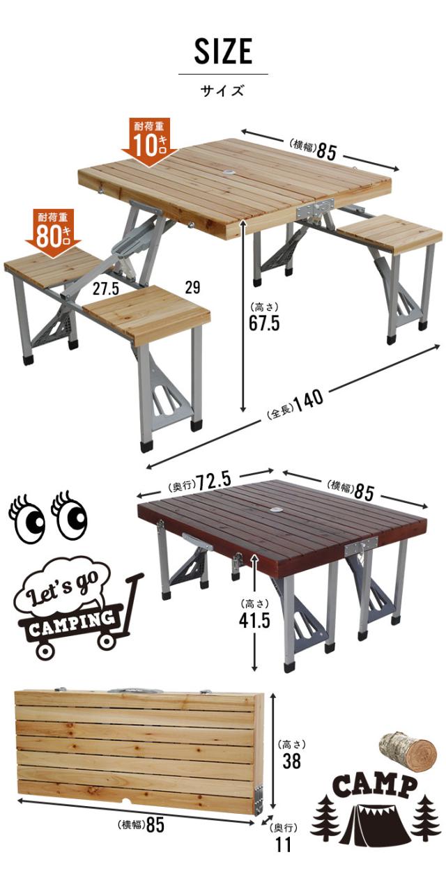 木製 ピクニックテーブル 折りたたみテーブル アウトドア テーブル レジャーテーブル ピクニック レジャー 運動会