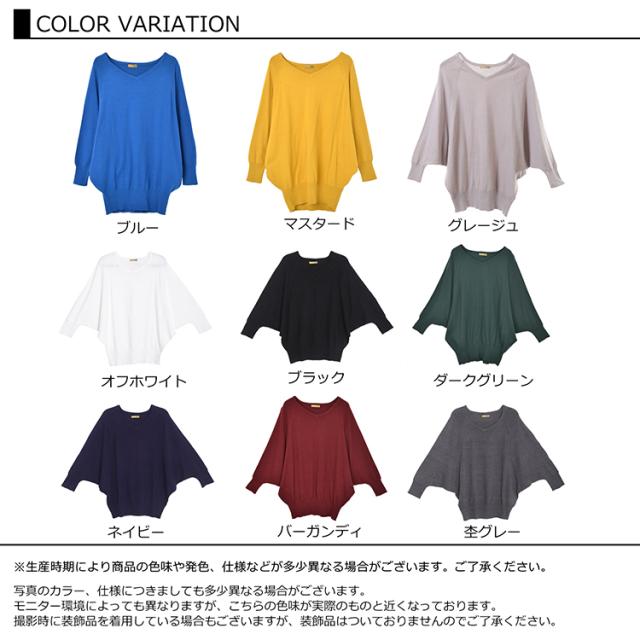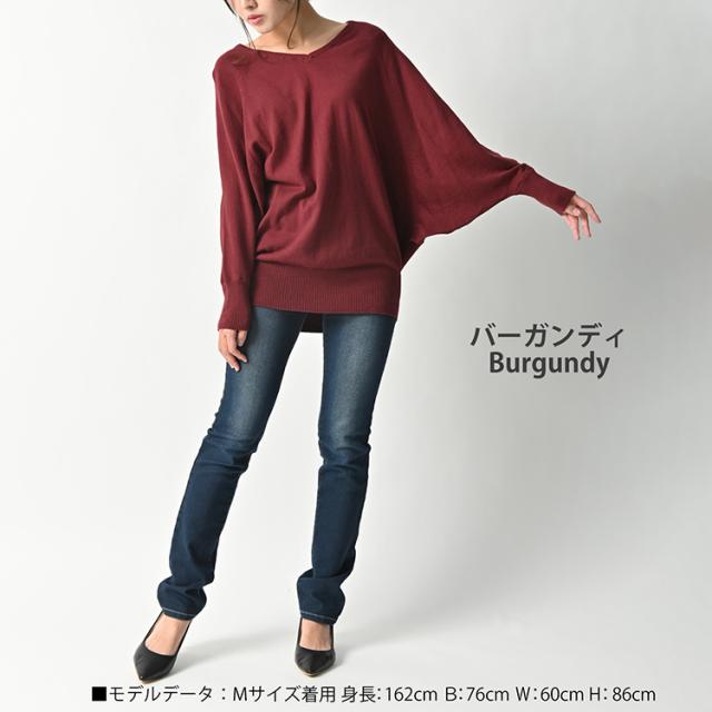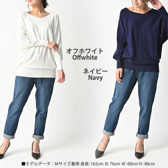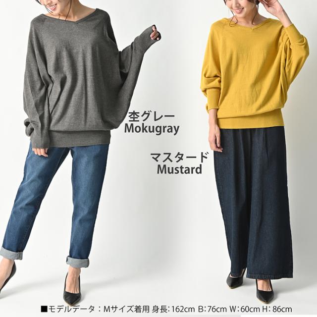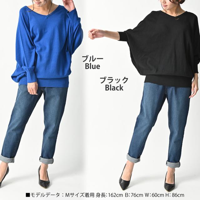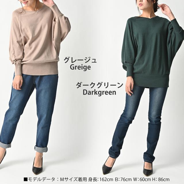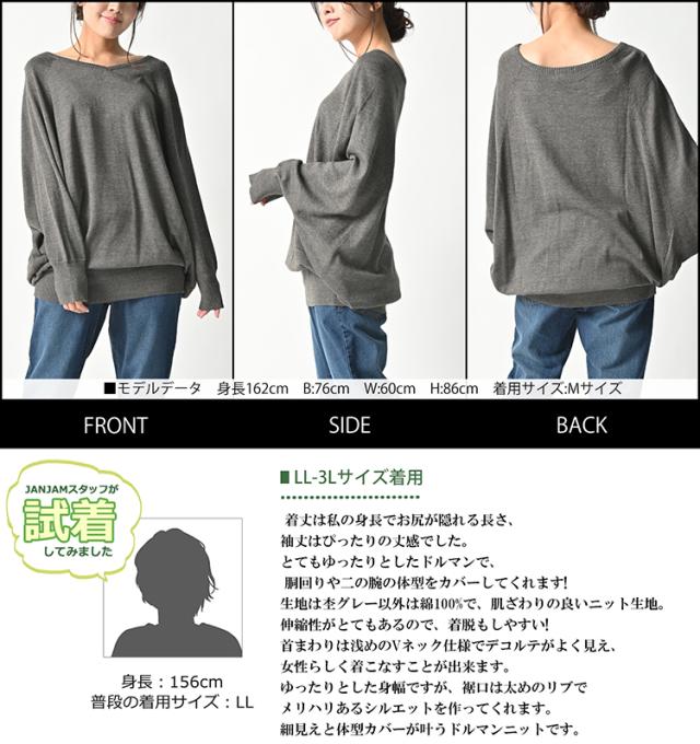 送料無料※沖縄/北海道対象外 大きいサイズ レディース ドルマンニット チュニック Vネック トップス 綿100 リブ袖 ドルマン カットソー