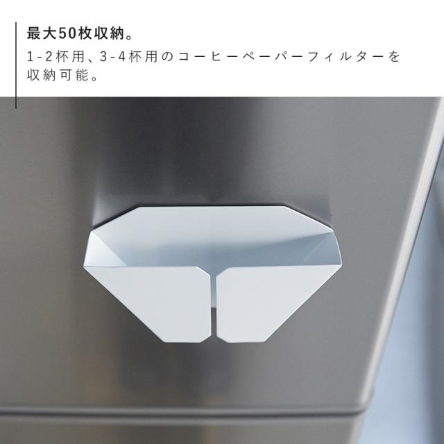 コーヒーフィルター最大50枚収納可能。強力マグネットで簡単取付。