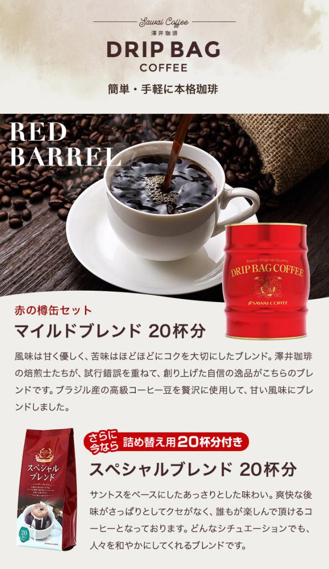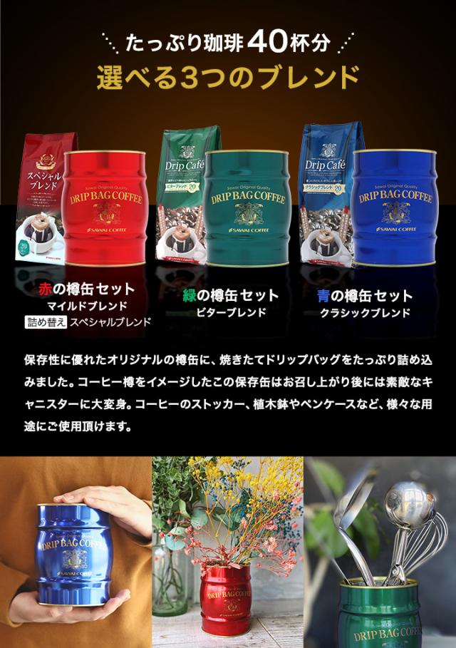 | 商品名 | 澤井珈琲 保存性抜群の樽缶 ドリップバッグ40杯分 ギフトセット |