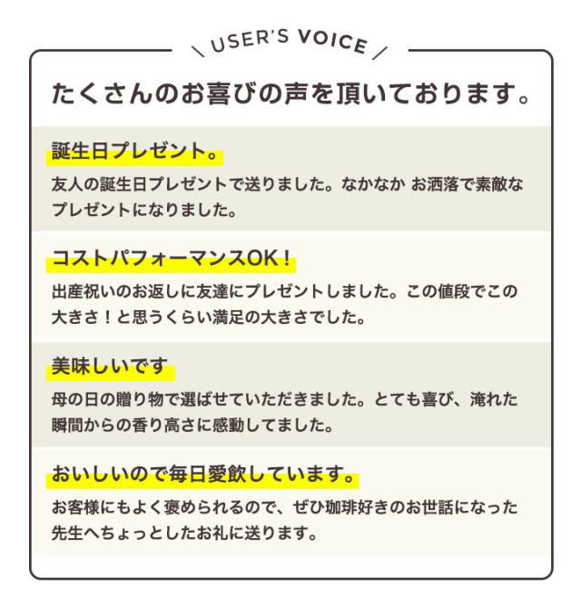 - コーヒーが好きな親戚に送りましたが、喜んでもらえました。価格もお手頃で助かりました。
