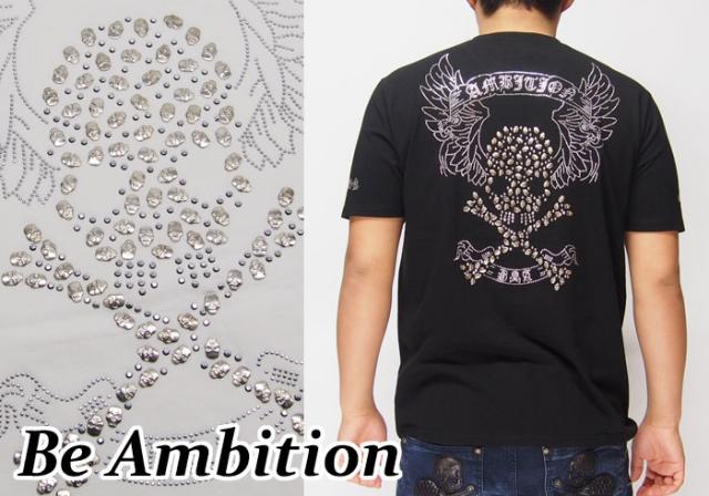 7590円を50%OFFセール Be Ambition[ビーアンビション] スカル&ウィング ラインストーン Tシャツ/半袖/T26101