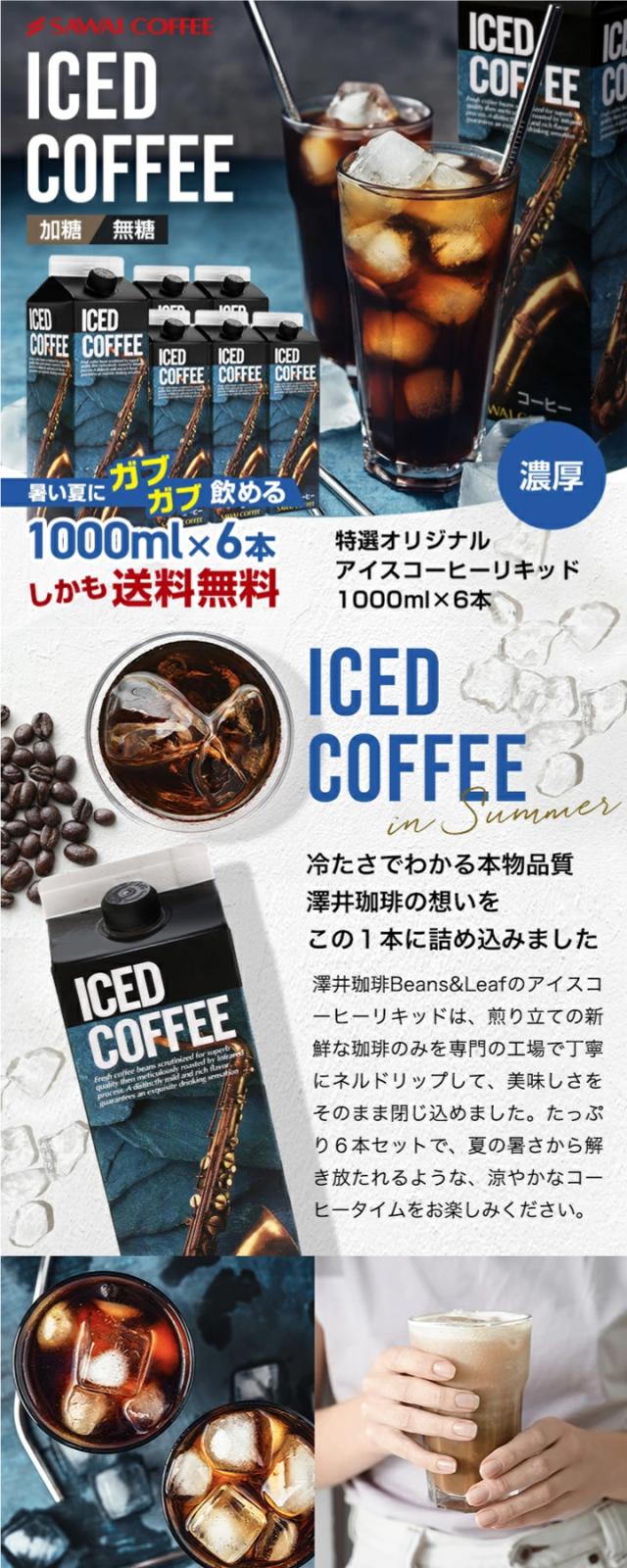 | 商品名 | 澤井珈琲の夏限定濃厚で香り高いアイスコーヒーリキッド1000ml × 6本セット |