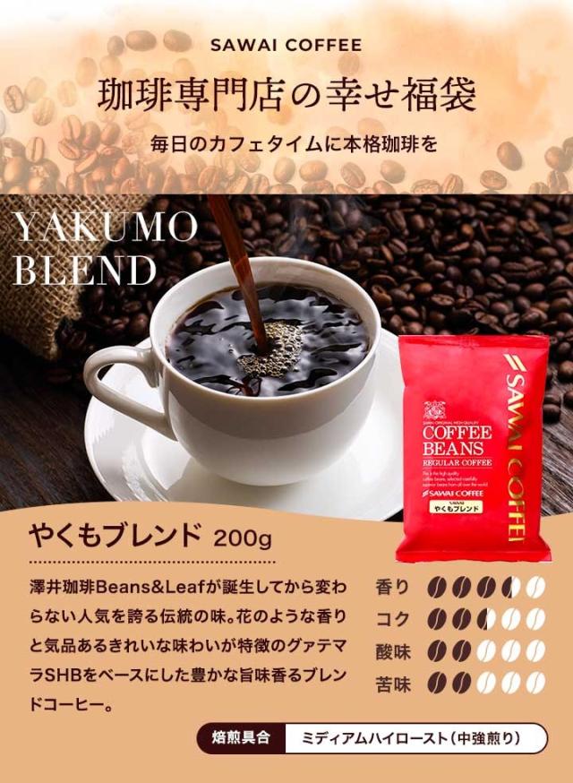 | 澤井珈琲の数ある商品からどれを選べば良いか分からないという方へご用意した、3種の店長おすすめのコーヒーとスペシャルプレゼントを1つのセットにした福袋です。 1. グアテマラSHBの気品ある味わい:やくもブレンド やくもブレンドは、澤井珈琲が誕生以来、変わらぬ人気を誇る伝統の味わいが特徴です。このブレンドには、花のような香りと気品あるきれいな味わいを持つグアテマラSHBが使われています。 2. 特別な想いを込めた一杯:ありがとうMVPブレンド ありがとうMVPブレンドは、受賞を記念して作られた特別なブレンドです。このコーヒーには、高級豆「サントス」が贅沢に使われており、その豊かな香りとさっぱりした旨味を大切にしながらブレンドした商品です。 3. 本格派の芳醇なコク:ヨーロピアンクラシック ヨーロピアンクラシックは、ヨーロピアンテイストを追求した本格派のコーヒーです。このブレンドは、芳醇なコクとシックな味わいが特徴で、特にカフェオレとして楽しむのに最適です。クッキーやスイーツとの相性も抜群で、ちょっと贅沢なコーヒータイムを楽しみたい方にぴったりです。 4. スペシャルプレゼント:ブルマンシフォンケーキ スペシャルプレゼントとしてご用意したブルマンシフォンケーキは、その柔らかさが特徴です。まるで空気のように軽い生地に、ローストされたブルーマウンテンの香ばしさが詰まっています。口に入れるとふわふわと溶けるような食感と、香ばしい香りが広がり、コーヒーと一緒に楽しむのにぴったりのスイーツです。 | |