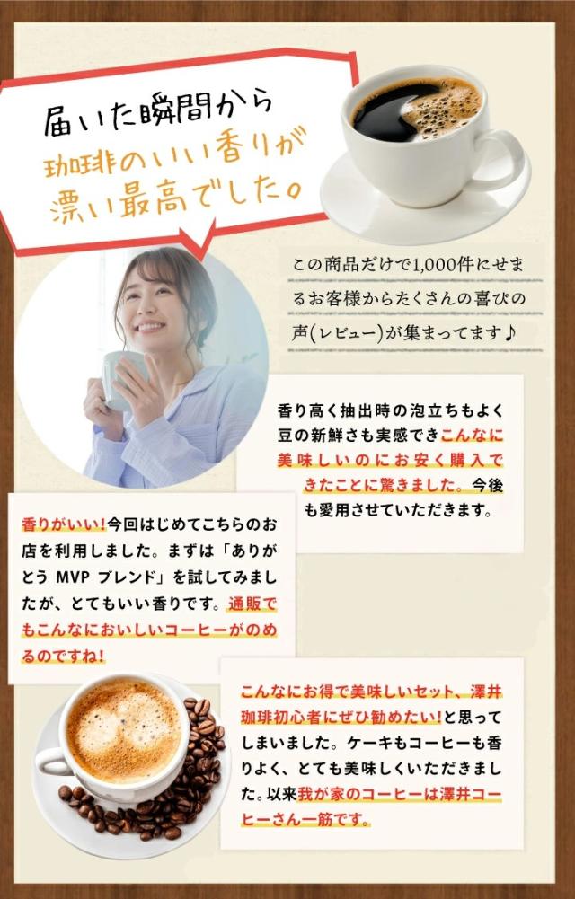 澤井珈琲(さわいこーひー)では、お客様のお家に商品が届き、箱を開けた瞬間。そして、トレードマークの赤いコーヒー袋の封を開けた時に鮮度抜群の「香り高さ」と、飲んだときの「味わい」に感動して頂けるように、レギュラーコーヒーはご注文を頂いてから焙煎をして焼きたてのコーヒー、コーヒー豆、珈琲、珈琲豆をお届けをしている焼き立て珈琲専門店です。お客様に「美味しい」と言って喜んで頂く事が私たちの喜びと思ってます。「美味しいコーヒーをお届けしたい」と想い続けて生まれたこだわりの味を、どうぞ、この機会にお楽しみくださいませ。澤井珈琲では、コーヒー豆は挽き方がご選択いただけます。珈琲豆を挽く事をお楽しみ頂ける『豆のまま』や、私共の専用の特注サイズの大型のミルで挽いて、コーヒー粉の状態にしてお届けする方法がございます。中挽き、細挽き、粗挽き、荒挽きなど様々な挽き方がございますが、私共がお薦めする『店長のおすすめ挽き』にて、そのコーヒーに合った一番美味しいと思える挽き方に挽いてお届けします。東京の銀座にも実店舗を構え、都内では浅草やスカイツリーのあるソラマチにも出店。「鳥取のコーヒー屋さん」とも呼ばれてますが、空気が綺麗で自然豊かな鳥取県に焙煎工場を構え、隣接する島根県の松江市や出雲市にも実店舗がございます。顔の見えないネット通販ですが、全国11店舗を展開する安心安全な澤井珈琲は、特徴的な「赤いコーヒー袋」に入れて、全国の珈琲好きにお選び頂いてます。よく間違えられる名前として、沢井珈琲、沢井コーヒー、澤井珈琲店、澤井珈琲本店、さわいこーひー、サワイコーヒーなどがございますが、正式名称は澤井珈琲となります。