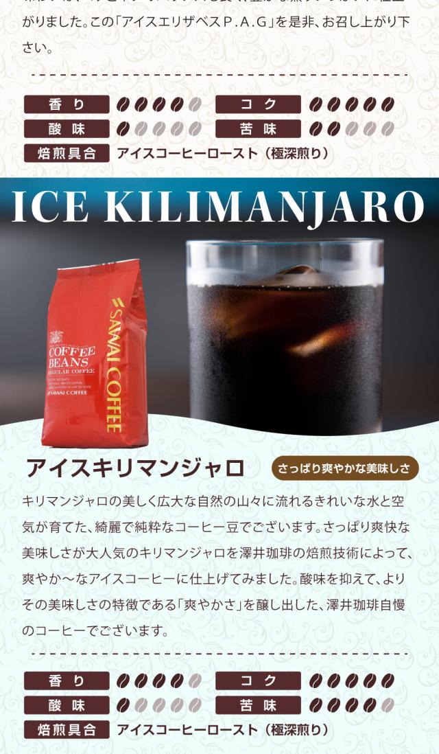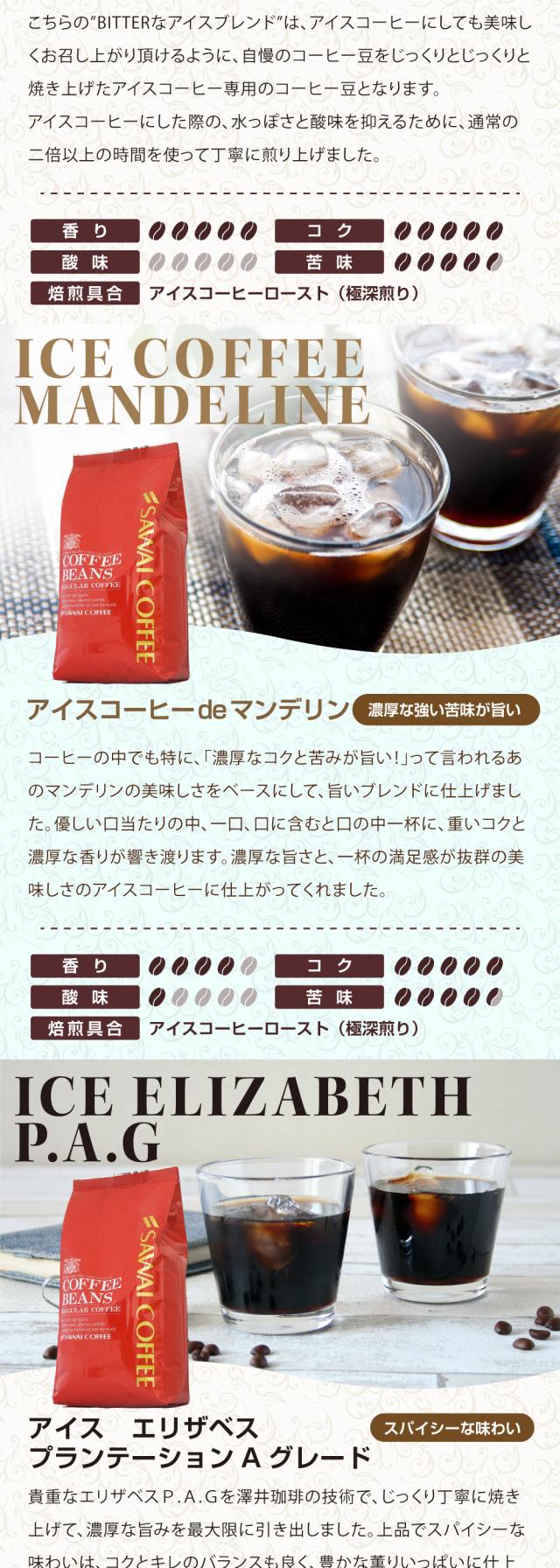 | 内容量 | ●BITTERなアイスブレンド 400g ●アイスコーヒー de マンデリン 400g ●アイスエリザベス P.A.G 400g ●アイス キリマンジャロ 400g |