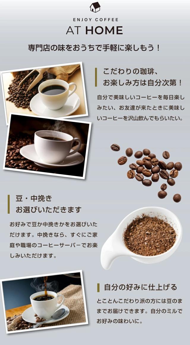 | 産地 | ●イエローマウンテン:ブラジル ●リフレッシング・キリマンジャロ:タンザニア ●サントス・プリンセス:ブラジル |