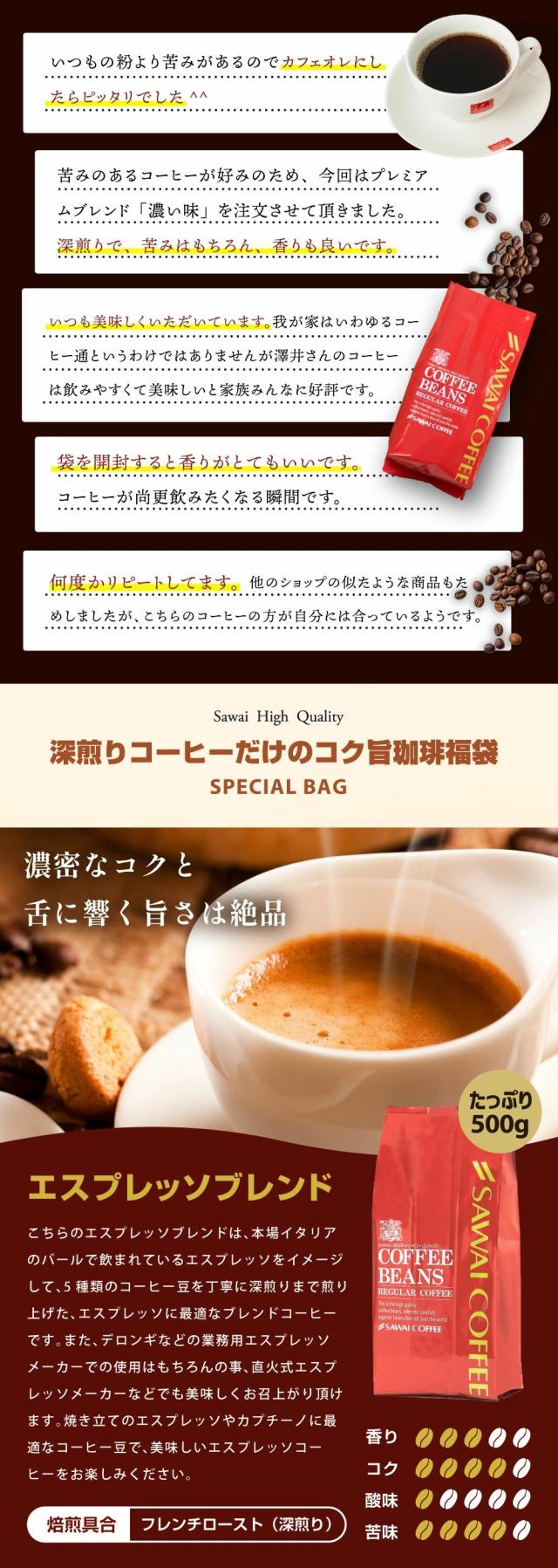【澤井珈琲】送料無料 深煎りコーヒーだけの コク旨珈琲福袋3(エスプレッソ/濃厚/苦)