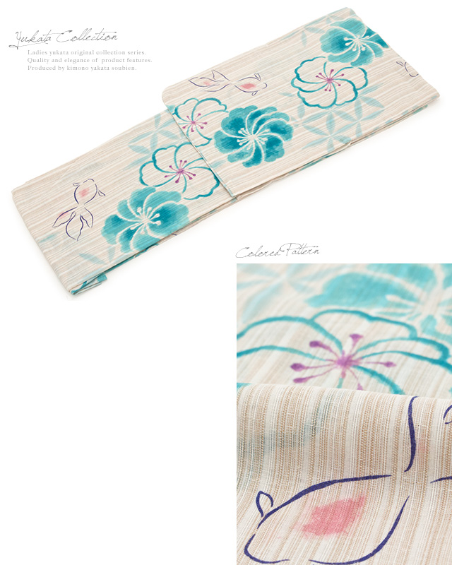 浴衣セット レディース レトロ 浴衣セット 大人 3点セット ベージュ 茶系 水色 ピンク 金魚 麻の葉 花 綿麻 半幅帯 女性 ボヌールセゾン