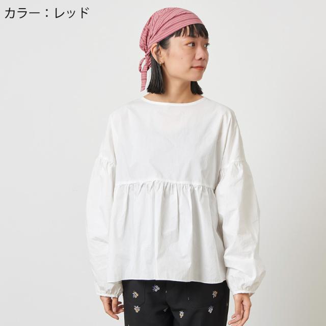 大判の生地を使い、ボンネットのようなサイズ感の新しいターバンキャップ。