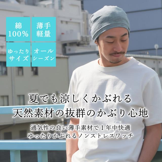 肌触りが良く、吸水性・通気性抜群のコットン素材を使用した、薄手、清涼ワッチ。