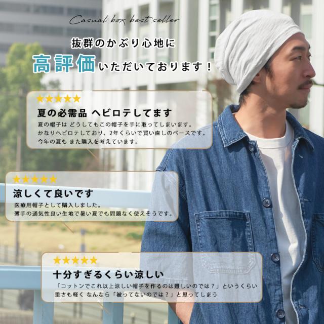 - 夏用のニットキャップを初めて買ったのですが、なかなかに良い物ですね。帽子が苦手なので、とても助かります。