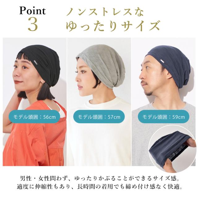 長時間かぶっても、窮屈感もなく、ゆったりとかぶれるサイズ感なので、性別・年代問わず長くかぶれます。