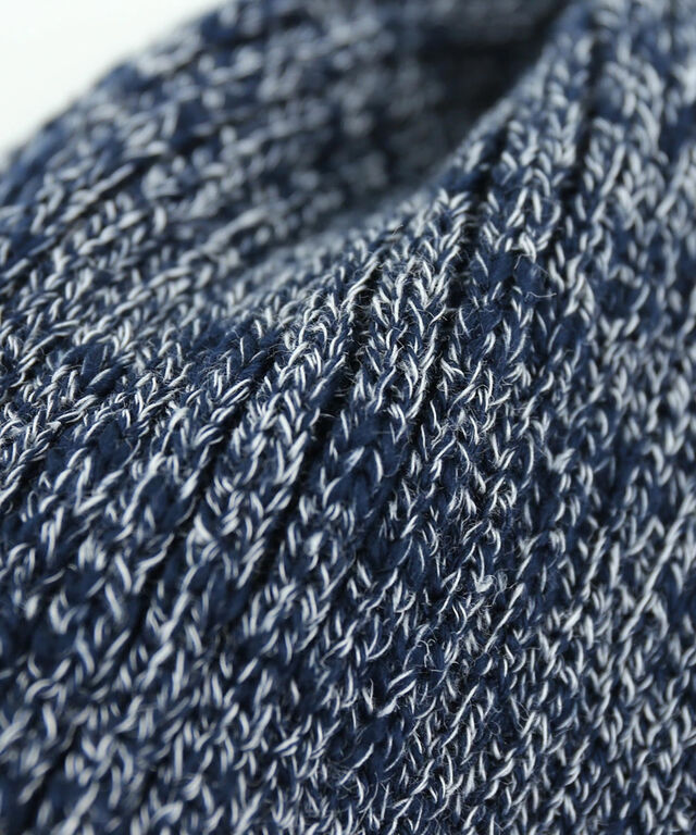 ネップの入った杢糸で編まれた、ふっくら厚みのある綿麻素材のニット。
