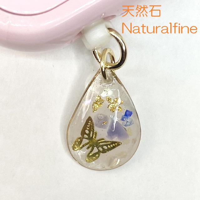 こちらは、アイオライトとアゲハ蝶のメタルパーツをレジンにいれたイヤホンジャックです。