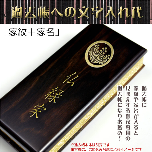 過去帳は別売り【過去帳表紙への文字入れ代「家紋」+「家名」】表紙は唐木タイプ