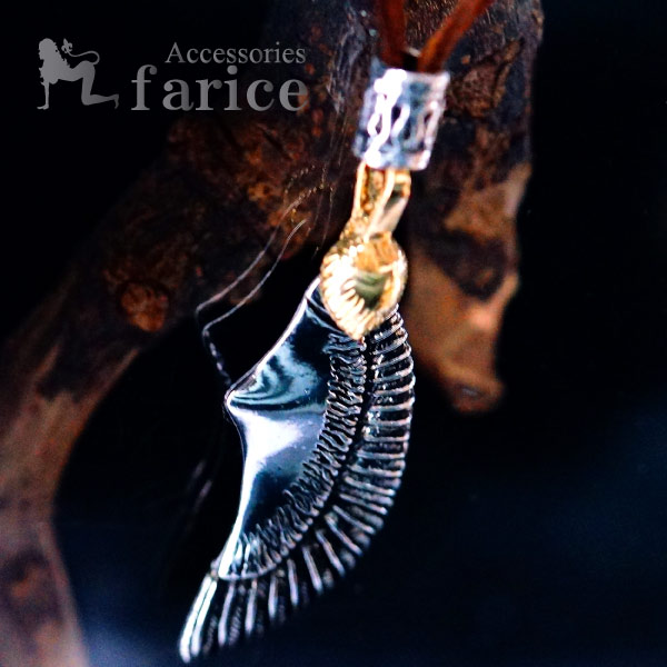 アメリカンイーグル ゴールドカラー・ハートフェザー(鷲の胸羽) インディアンジュエリー風 メンズ ネックレス【ブラウン紐一体型】