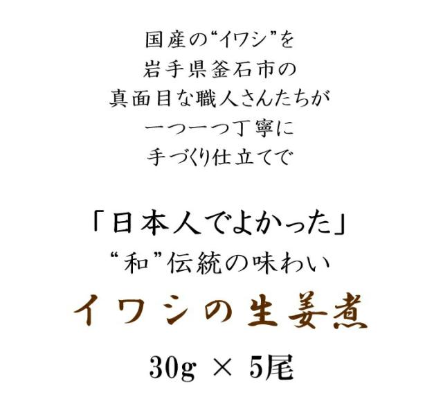 国産イワシの生姜煮 30g×5切入り 湯煎で温めるだけの簡単調理 化学調味料不使用 いわし 鰯 おつまみ おかず