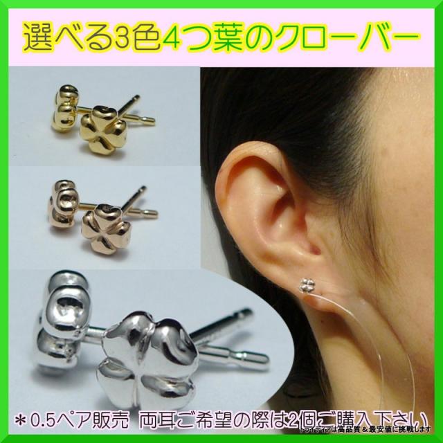 選べる18金 18k 四つ葉 ピアス 片耳分 1個 k18 イエロー ピンク ホワイト ゴールド レディース K18 刻印 クローバーピアス18k