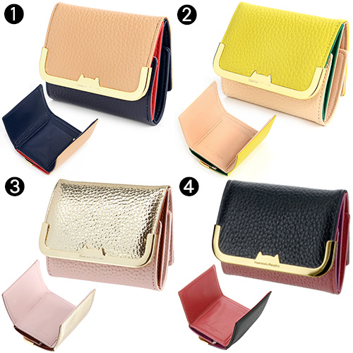 | キラキラのネコモチーフが可愛さ抜群の【シュリンクコンビ】シリーズに、ミニ財布が登場♪ 大人っぽいバイカラー配色にネコちゃんの金具がワンポイントになっていてきれい目に使えます。 小銭入れ部分は口が大きく開くので確認しやすくとても便利☆ ミニサイズのお財布なので、手軽に持ち運べて荷物も増やしません♪4色それぞれ可愛いので自分好みを選んでみてください☆ |