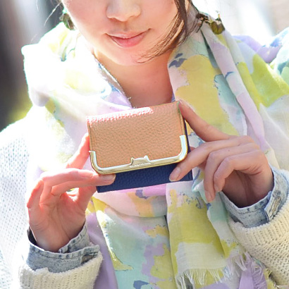 大人っぽいバイカラー配色にネコちゃんの金具がワンポイントになっていてきれい目に使えます。