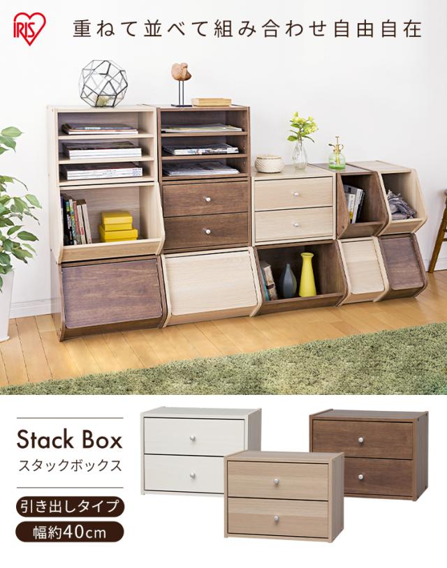 スタックボックス 引出付き 収納 収納ボックス 家具 ラック 重ねる 木目調 木製 おしゃれ STB-400H アイリスオーヤマ 送料無料 【int】