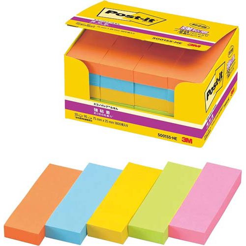 ポスト・イット エコノパック 強粘着 ふせん 蛍光色 5001SS-NE(90枚*20パッド)[事務用品]