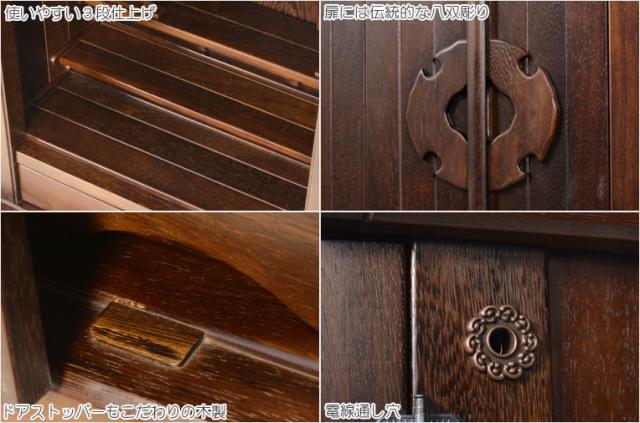 扉部分には寺院等にも使われている伝統的な装飾、八双彫りデザイン