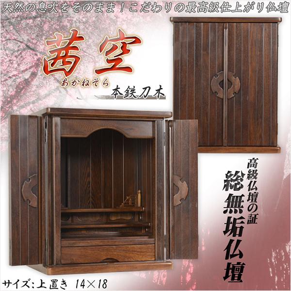 高級モダン仏壇【本鉄刀木総無垢:茜空(あかねそら)14×18 全面フローリング仕立て】上置き小型仏壇・ミニ仏壇 送料無料
