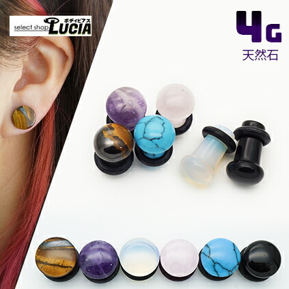 本日P2倍 4G ピアス ボディピアス 天然石 シングルフレア アイレット 高品質 プラグ 拡張 パワーストーン