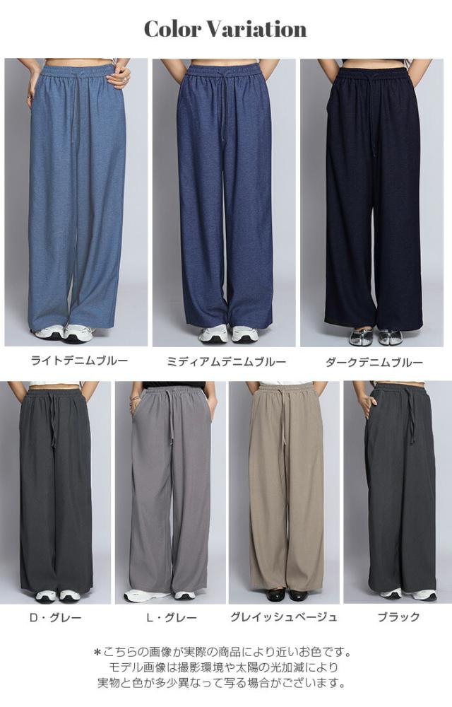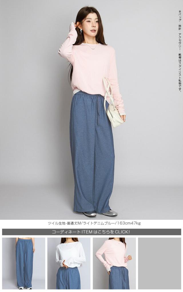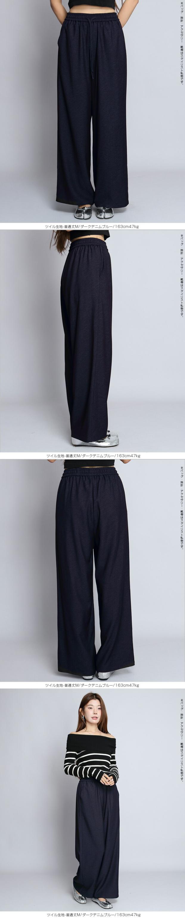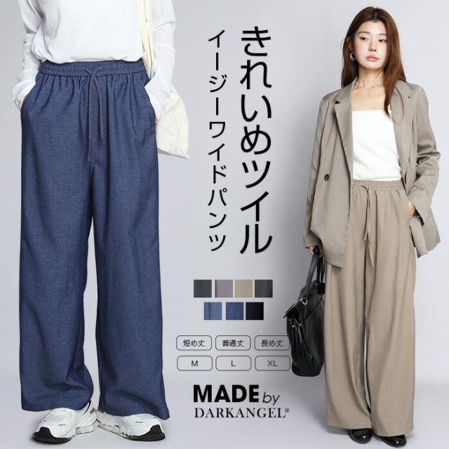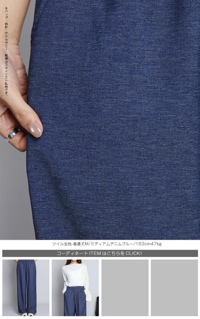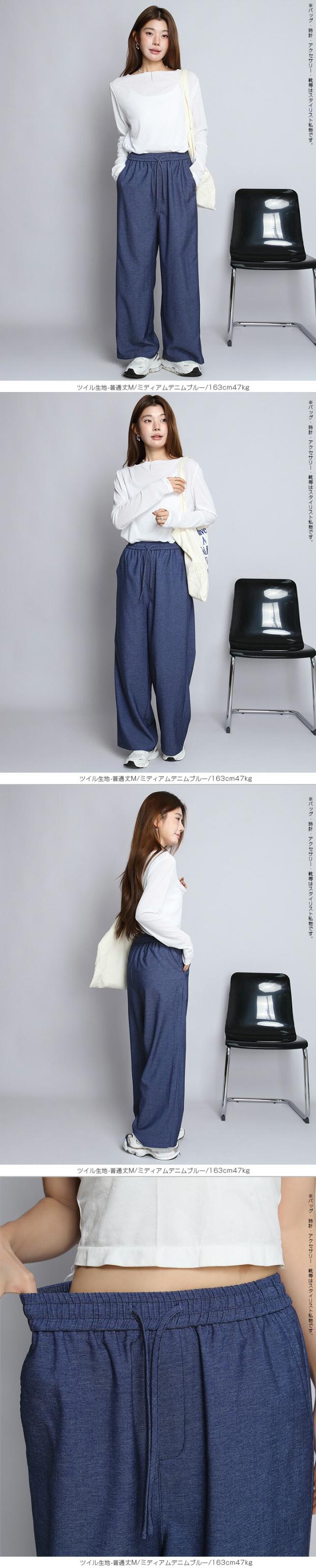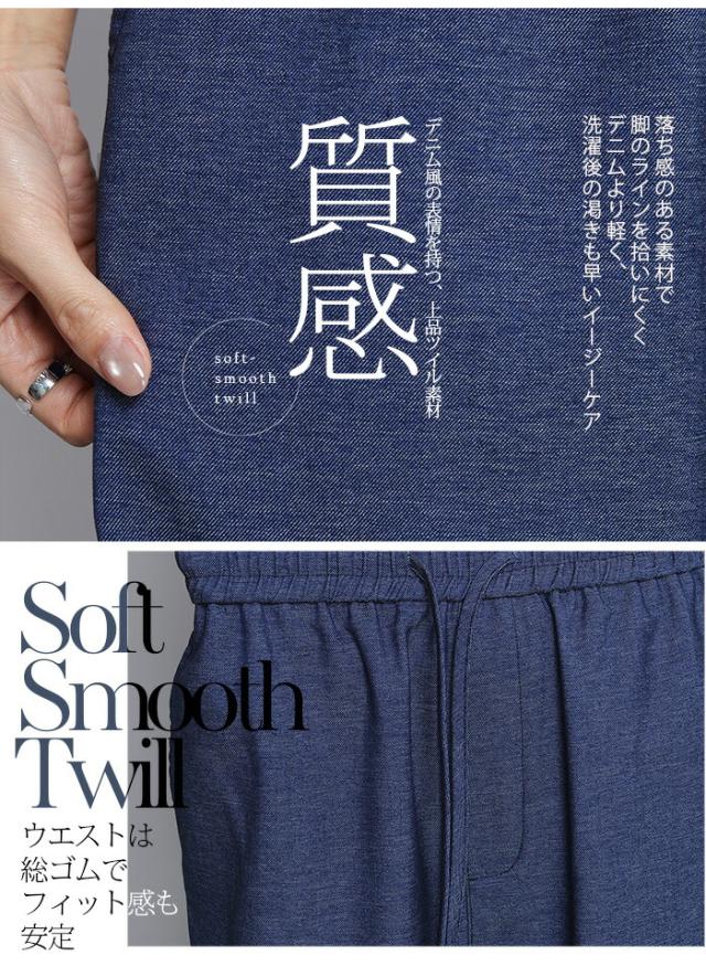 1,500円OFFクーポン!パンツ ワイドパンツ デニム風 レディース 春 夏 フルレングス ウエストゴム ツイルパンツ ワイド 体型カバー ポケット付 カジュアル 【 きれいめツイルイージーワイドパンツ 】ダークエンジェル