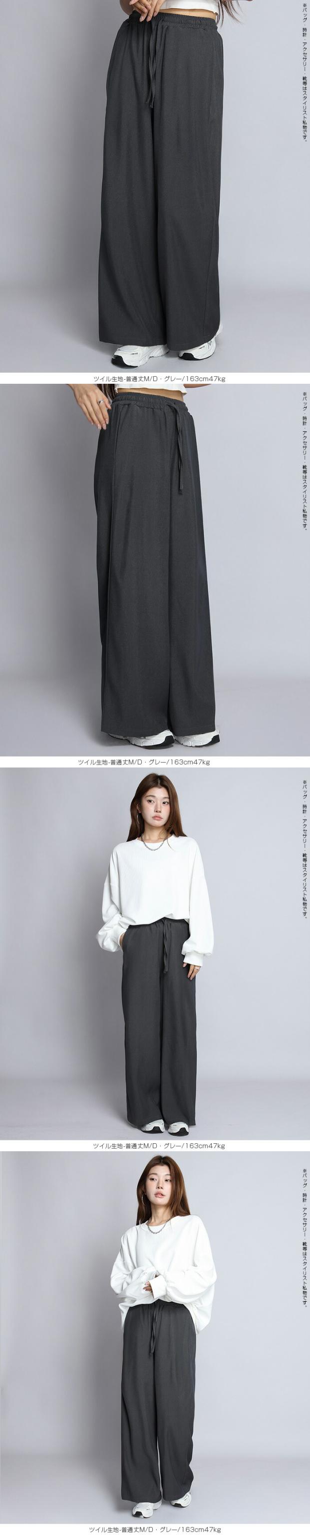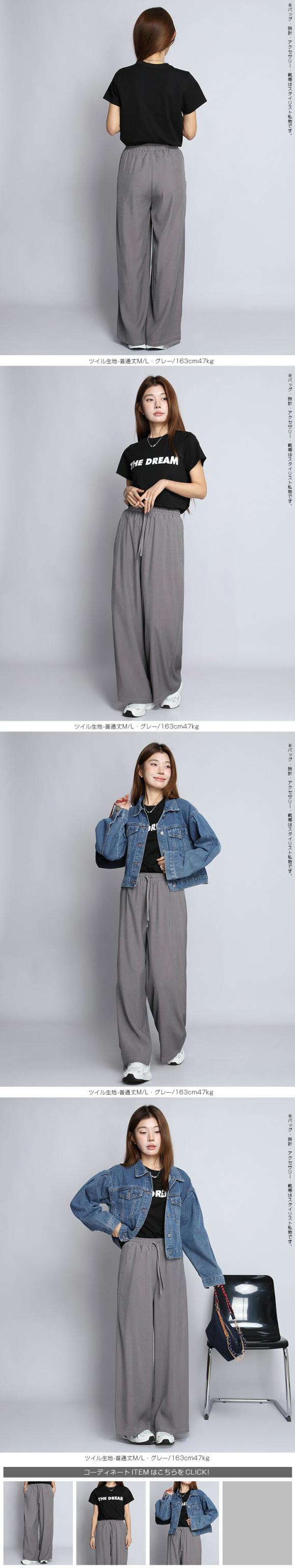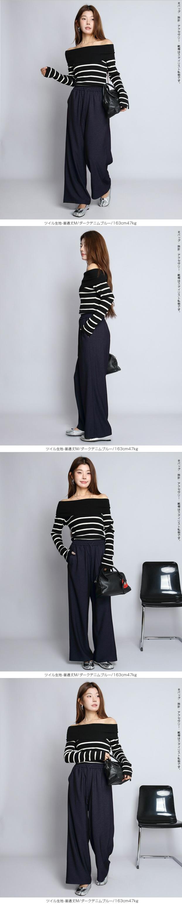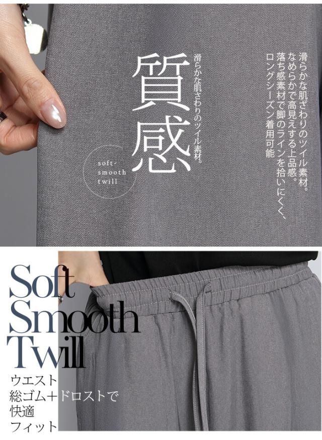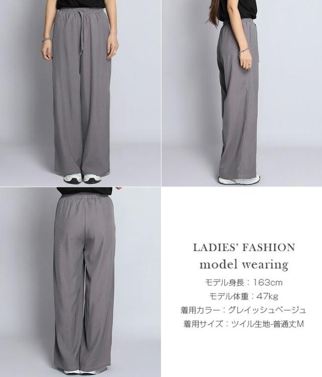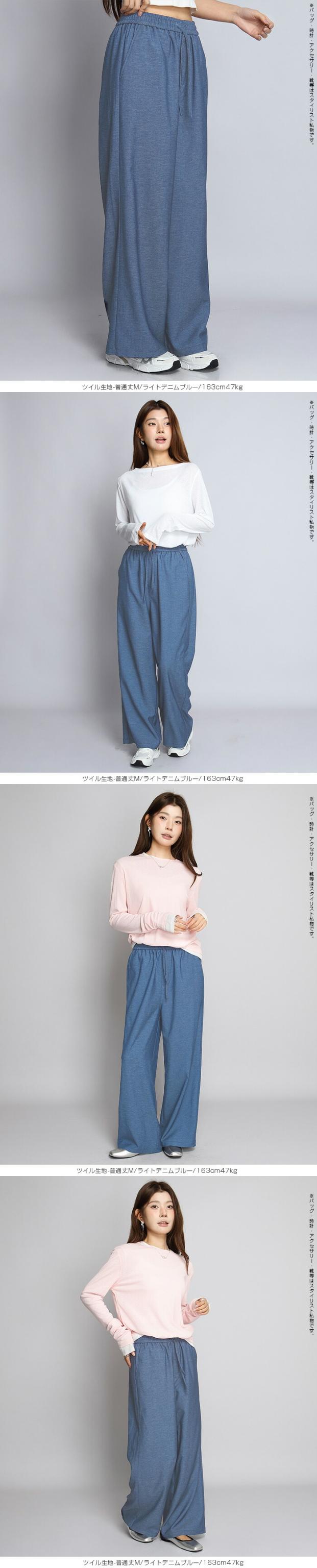 1,500円OFFクーポン!パンツ ワイドパンツ デニム風 レディース 春 夏 フルレングス ウエストゴム ツイルパンツ ワイド 体型カバー ポケット付 カジュアル 【 きれいめツイルイージーワイドパンツ 】ダークエンジェル