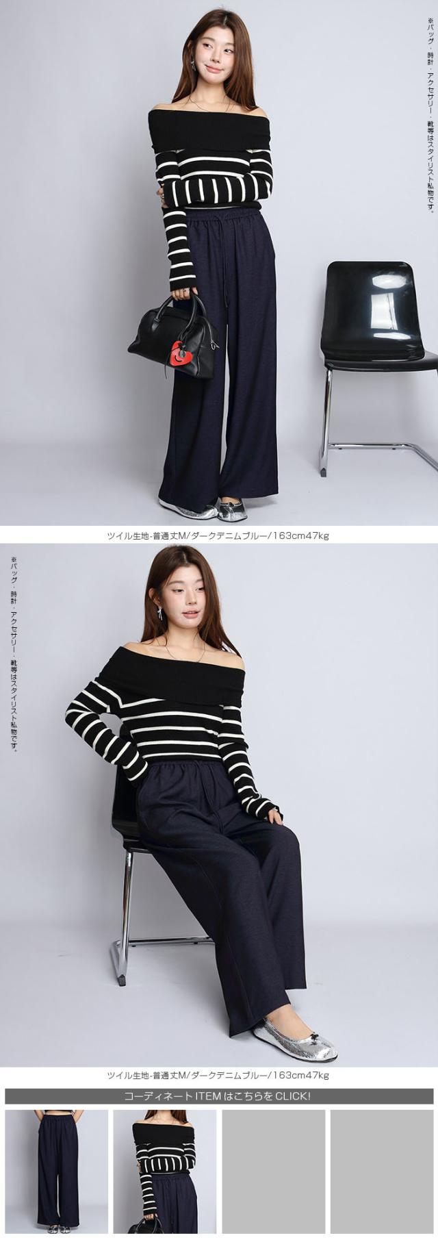 【 きれいめツイルイージーワイドパンツ 】 上品な落ち感と、なめらかな肌触りが魅力の ツイル素材を使用した、大人のためのワイドパンツ。 ウエストは総ゴム+ドロスト仕様で、 ラクな穿き心地と、すっきりとした見た目を両立しました。 ストンと縦に落ちるシルエットが、 脚のラインを自然にカバーし、脚長効果も◎ カジュアルすぎず、きれいめにも使える万能パンツです。 通勤・外出・デイリーまで、 幅広いシーンで活躍する一本に仕上げました。 《商品ポイント》 ・上品な表情のツイル素材で高見え ・ウエスト総ゴム+ドロストで快適フィット ・締め付け感がなく長時間もラク ・落ち感素材で脚のラインを拾いにくい ・きれいめにもカジュアルにも対応 ・ロングシーズン着用可能 《デザイン・シルエット》 ・ストンと落ちるストレートワイドシルエット ・腰まわりはギャザー入りで自然に体型カバー ・センター切替で縦ラインを強調し、脚長効果◎ ・広がりすぎない大人向けワイド幅 ・ウエストは総ゴムでフィット感も安定 《コーディネート提案》 ・シアートップスやカットソーと合わせて抜け感コーデに ・オフショルやボーダーニットで女性らしいカジュアルに ・ブラウス合わせで通勤・外出にも対応 ・スニーカーでリラックス、パンプスで上品見え ・春〜秋までロングシーズン着回し可能 《サイズ・カラーバリエーション》 サイズ:短め丈M / 短め丈L / 短め丈XL / 普通丈M / 普通丈L / 普通丈XL / 長め丈M / 長め丈L カラー:ブラック / グレイッシュベージュ / D・グレー / L・グレー / ライトデニムブルー / ミディアムデニムブルー / ダークデニムブルー 《素材・機能性》 ・素材:ポリエステル100% デニムカラー:ポリエステル80%、レーヨン18%、ポリウレタン2% ・透け感:ほとんどなし ・伸縮性:なし ・厚み:薄手(春〜秋に◎) |