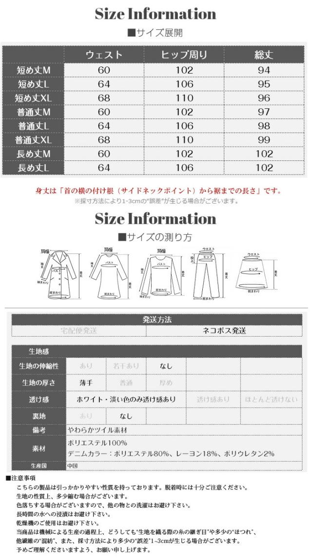 普通丈L / 普通丈XL / 長め丈M / 長め丈L