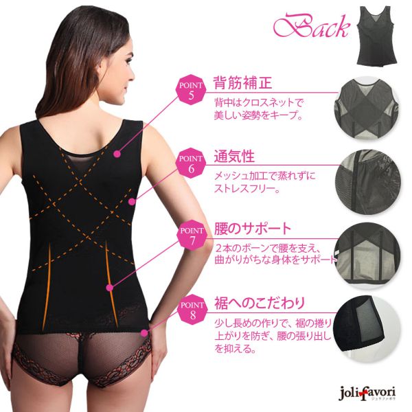 これ1着でバストアップと猫背補正、ウエストの引き締めが可能です。