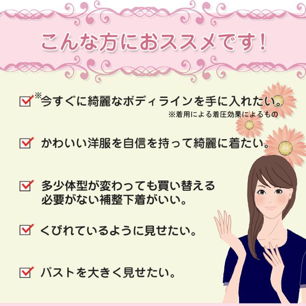 体型維持や崩れた体型を整えようと思って使う下着となります。