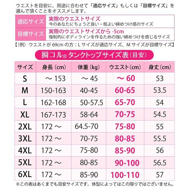 ※詳しくは画像「瞬コル タンクトップサイズ表(目安)」をご参照ください。