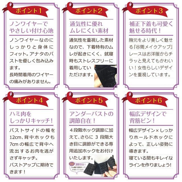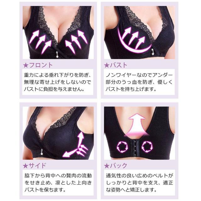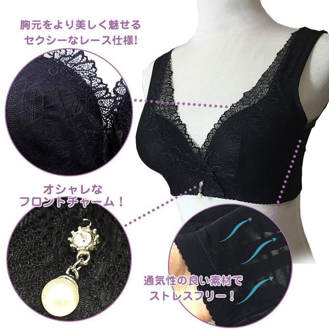 ナイトブラ 3/4カップ 拡張ホック付き 脇肉 脇高 バストアップ 猫背矯正 補整下着 かわいい レース 送料無料