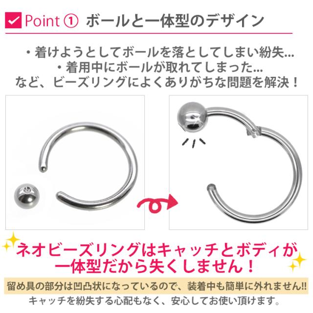 金属アレルギー対応 ピアス ワンタッチ ボディピアス ネオビーズリング 18G 16G 14G 耳たぶ 軟骨