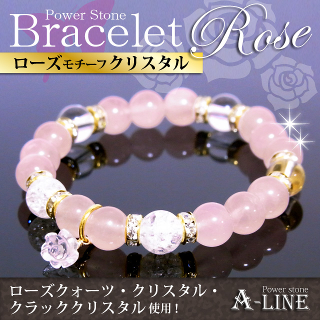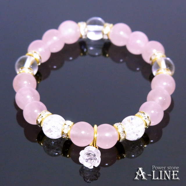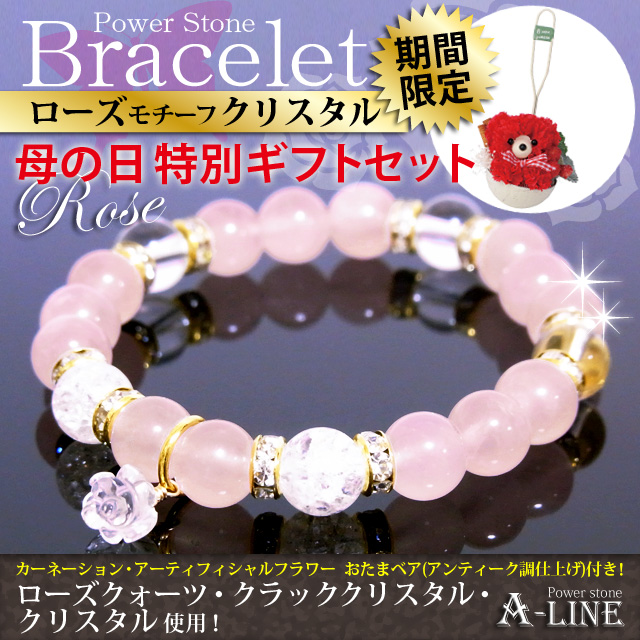母の日SET ローズモチーフクリスタル&ローズクォーツ&クラッククリスタル8mm おたまベア付き PW-2962