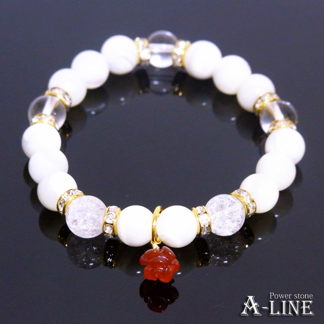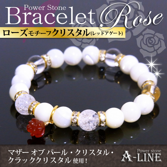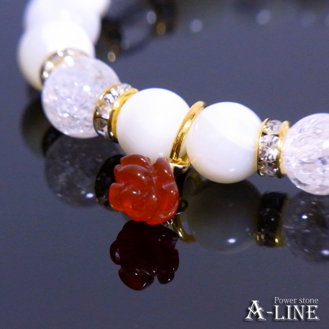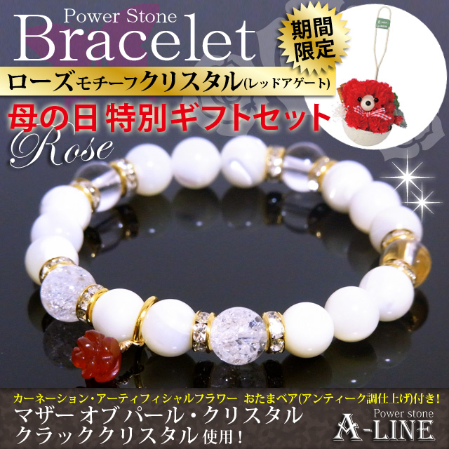 母の日SET ローズモチーフレッドアゲート&マザーオブパール&クラッククリスタル8mm おたまベア付き PW-2964