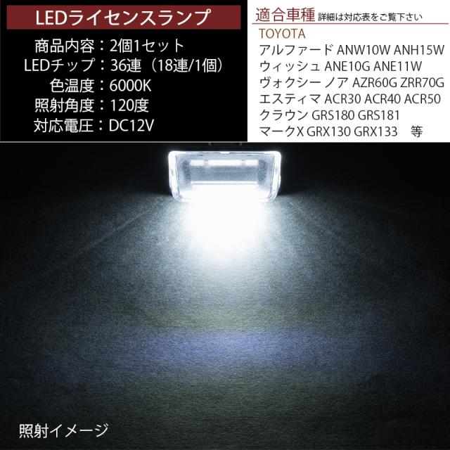 LEDライセンスランプ 車種専用設計 アルファード ウィッシュ ヴォクシー ノア エスティマ カローラ クラウン マークX 等【配送種別:B】