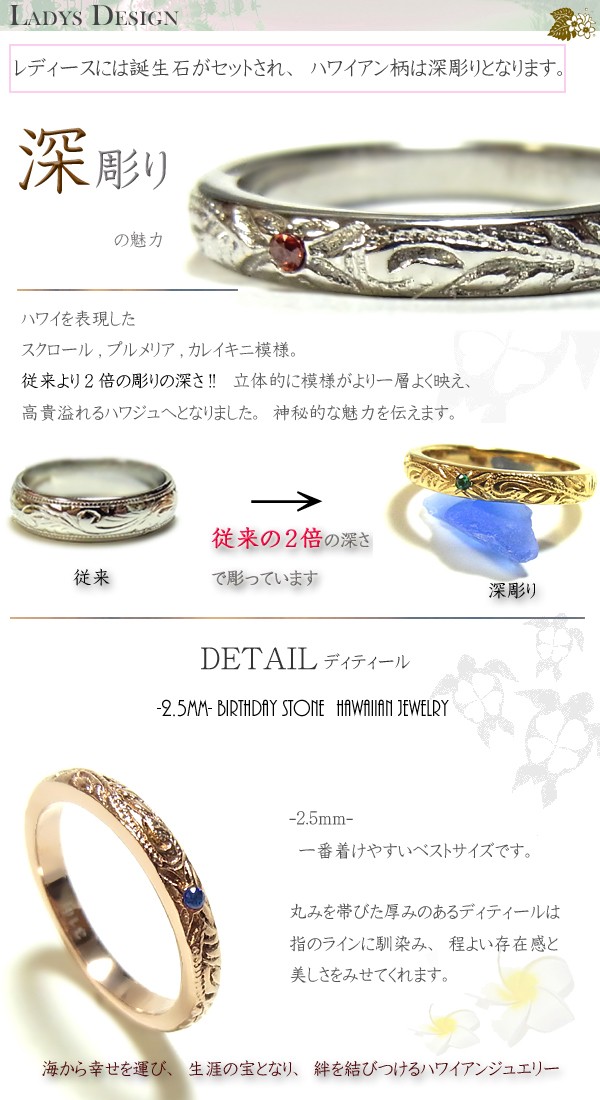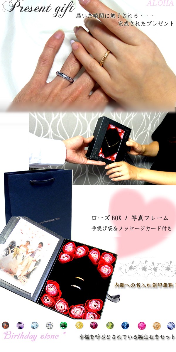 送料無料 刻印無料 ペアハワイアンジュエリー ペアリング 誕生石 プレゼント 結婚指輪 マリッジリング 入浴剤 写真フレーム ラッピング対応 アレルギー対応