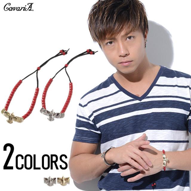 ブレスレット メンズ CavariA【キャバリア】バードビーズブレスレット 全2色即日発送【ブレスレット メンズ ビーズ フェザー イーグル 革紐 ネイティブ BITTER ビター】 プレゼント ギフト バレンタインSALE