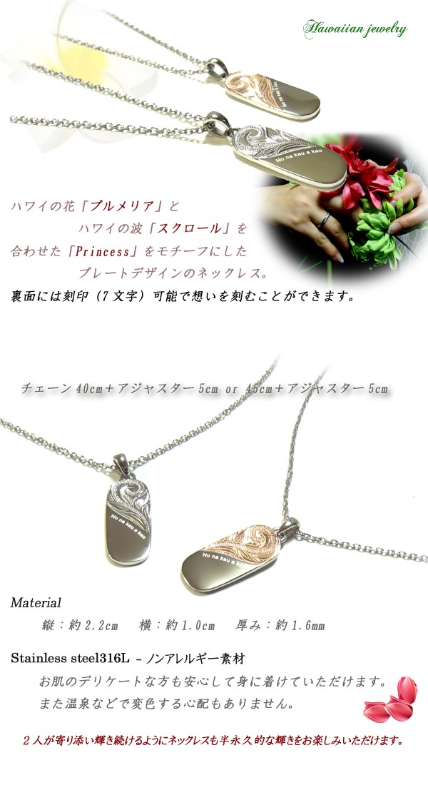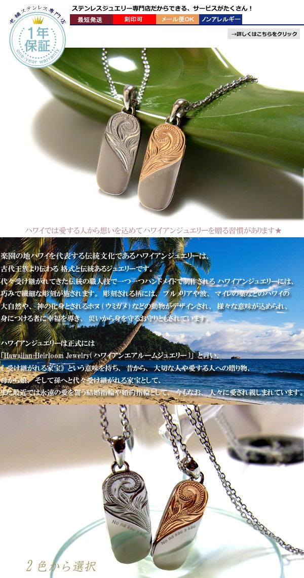 送料無料 刻印可能 ハワイアンジュエリー プレートネックレス ペンダント メンズ レディース ピンクゴールド ステンレス ラッピング対応 アレルギー対応